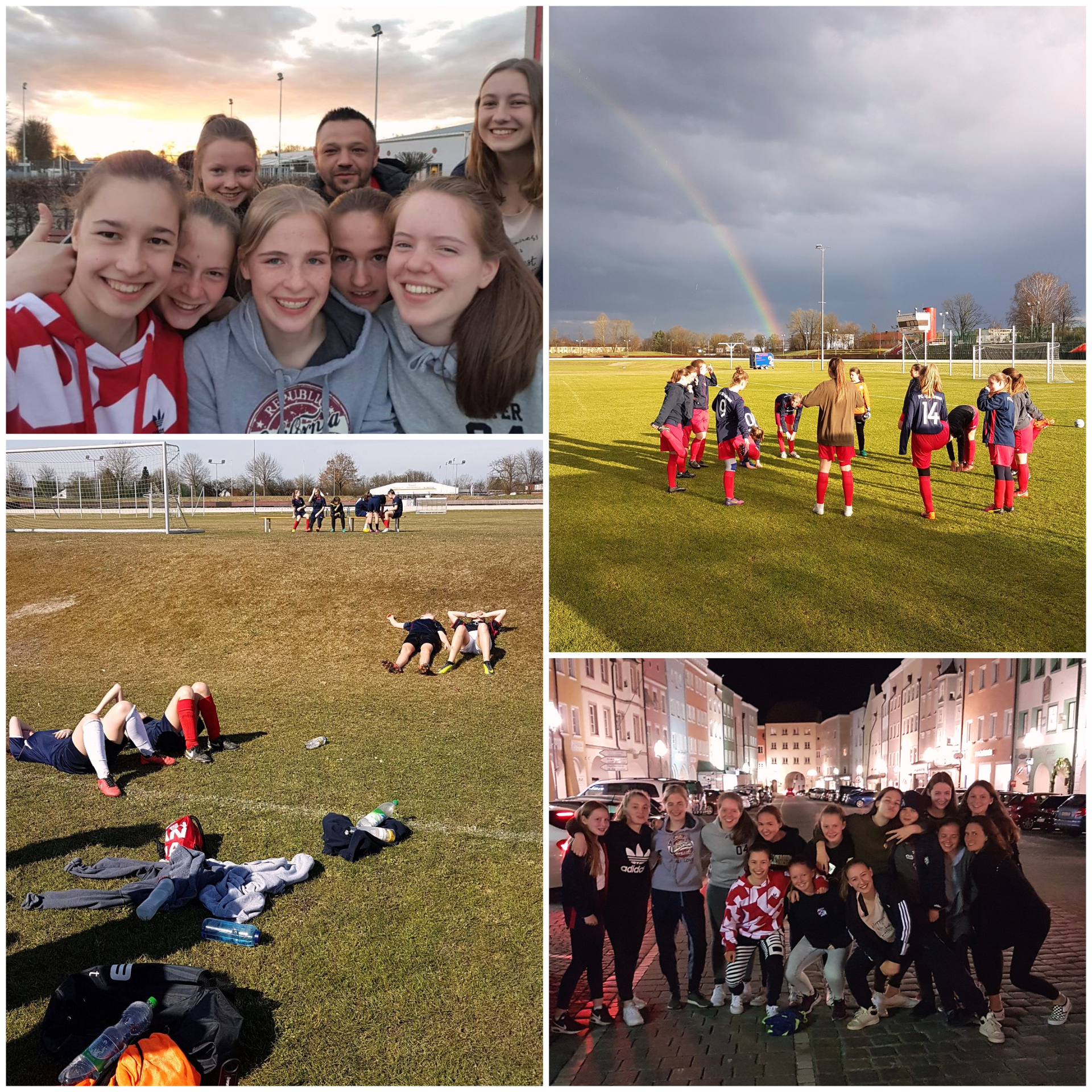 Am letzten Abend mussten dann die B-Mädchen in einem Testspiel gegen die SG Polling-Mühldorf zeigen, ob sie für die Rückrunde bereit sind. Da die Gegnerinnen immerhin auf Platz 6 der Bezirksliga Oberbayern stehen, war schon vor dem Spiel klar, dass es eine schwere Aufgabe werden würde. Umso höher war die Leistung der Mädels einzuschätzen. Durch eine unglückliche Situation in der Abwehr gelangten sie zwar in Rückstand, glichen aber bald mit einem sehenswerten Weitschuss unter die Latte zum 1:1 aus. In dem sehr körperbetonten Spiel mussten sie noch vor der Halbzeit das 2:1 hinnehmen. Aber auch dadurch ließen sich unsere Mädchen nicht beeindrucken. Mit einer tollen Teamleistung gelang ihnen in der zweiten Halbzeit nach dem Ausgleich sogar noch der Siegtreffer zum Endstand von 2:3. Toll gemacht!!! Am Abend wurde der Sieg dann ausgelassen gefeiert.